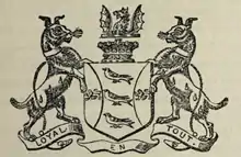 In 1569 the earls of Westmoreland, and Northumberland rose against Queen Elizabeth supporting the Catholic religion and the claim of Mary Stuart, Queen of Scots to the English throne. The rebels occupied Durham on 14 November 1569[18] where mass was celebrated in the cathedral.[19] Lord Thomas Radclyffe, 3rd Earl of Sussex, who had been appointed Lord President of the North by Elizabeth in 1568, assembled an army in York and then marched against the rebels on 13 December. Browne had stayed loyal to Elizabeth and led some troops on this march as we know from a letter he wrote on 16 December 1569 to Henry Carey, 1st Baron Hunsdon, while approaching Durham.[20] The rebels avoided engaging Sussex's superior forces and fled into Scotland. Lesser landlords involved in the rebellion were pardoned upon paying a fine that was collected by Thomas Gargrave, High Sheriff of Yorkshire, who handed the accounts and the money to Browne, treasurer, in July 1570.[21] Browne was knighted by Sussex in 1570 becoming Sir Valentine of Totteridge (Hertfordshire), Croft (Lincolnshire), and Hoggsden (Middlesex).[22][23]