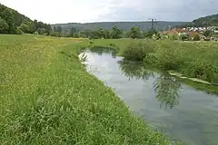 Sirgenstein Cave is besides the better known sites Hohle Fels and Geissenklösterle, one of three caves that bear evidence of prehistoric human presence, located in the Ach River valley within a distance of 5 km (3.1 mi) between Schelklingen village and Blaubeuren village, around 20 km (12 mi) west of Ulm city in Baden-Württemberg.[5]