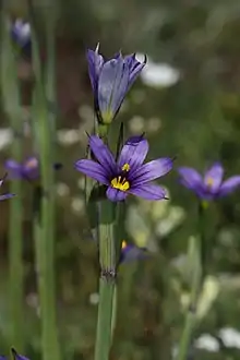 Sisyrinchium idahoense, the Idaho blue-eyed grass,[2] is a perennial that is native to western North America. It is not a true grass, but is instead in the family Iridaceae.[3]