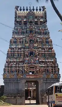 Sivalokanathar Temple (சிவலோகநாதர் கோயில்)[1] is a Hindu temple in the Indian state of Tamil Nadu. It is dedicated to the god Shiva. The temple is situated in the village of Tirupunkur or Thirupunkur which lies about 3 miles west of Vaitheeswaran Koil.[2] The temple is associated with the legend of the Saivite saint Nandanar who was one of the 63 Nayanmars. While being a Dalit, Nandanar was not allowed inside the temple, the idol of Nandi within the temple precincts moved a few inches at the command of Shiva so as not to obstruct Nandanar's view from the gate of the shrine.