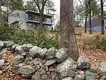 The rocky hill on which the neighborhood is built provides many visual reminders of New England's glacial past, with large expanses of granite ledge visible outside and sometimes inside the houses. The neighborhood is crossed with rough stone walls of a form typical to this part of New England, which are essentially linear piles of large rocks, placed there by settlers in the 18th and early 19th century.[18] At the time the former grazing land was purchased by TAC, some of the steeper areas had become reforested. Photographs of the newly built houses show young juniper and birch trees, which are typical pioneer species that emerge after an area ceases to be grazed or mowed. Most recently the area is populated with many mature white pines, hickory, red and white oaks which thrive in the highly acidic, stony soil.