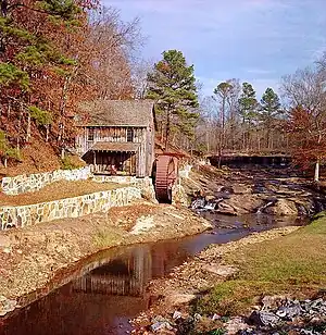 Sixes, home to approximately 14,540, is an unincorporated community in western Cherokee County, Georgia, United States, located about three miles west of Holly Springs and near the eastern shore of current-day Lake Allatoona. The community is located in the Georgia Gold Belt, which runs southwest to northeast along the southern edge of the Blue Ridge mountains.[1] The Sixes Gold Mine, a now-defunct gold mine dating back to the early 19th century, was located just to the northwest.[1] In addition, the community is home to the Sixes Mill, which was originally built around 1820 by early gold prospectors and later rebuilt circa 1880. The mill has been well preserved and is still located off Sixes Road. There are two theories on how Sixes derived its name. The first theory attributes the name to Fort Hinar Sixes, a Cherokee Indian removal fort that was located in the area along the Trail of Tears. The second holds that the name is derived from an old Cherokee village that was located near the Etowah River named "Sutali" — the Cherokee word for the number six. Sixes also lent its name to Fort Sixes, an 1830s US Army fort that served as a removal collection point for Cherokee prior to the Trail of Tears. Sutallee, a community that sits on the opposite side of the Etowah River (now Lake Allatoona) in western Cherokee County, also derives its name from this Native American village. Today, Sixes is a growing suburban community with many large, upscale residential neighborhoods, including BridgeMill. The area is served by two elementary schools (Sixes & Liberty); one middle school (Freedom); and two high schools (Woodstock & Cherokee).