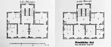 The castle was probably built in 1639–1643 and is in a German-Dutch late Renaissance style. It is built of brick, but during a renovation in the 1890s the facade was covered in stucco and the building attained its present ornate decoration, as well as its present colour. It lies on a peninsula in a small lake, Lake Fysingen, and is surrounded by a park. The park was probably laid out in the 18th century and transformed into an English landscape garden during the 19th century. The main building is flanked by four low wings, built during the middle of the 18th century.[1][2]
