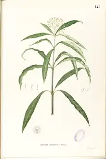 Skimmia laureola is a species of shrub grown as an ornamental plant. The leaves are edible when cooked. The leaves give an aromatic smell when crushed. It produces white flowers that develop into small round red berries. The berries are eaten by birds, which disperse the seeds through their droppings. Its distribution ranges from northern China to the Northern Himalayas.