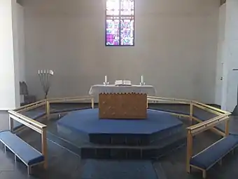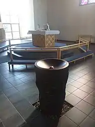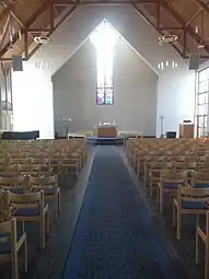 The foundation stone was laid on 6 June 1997 and it was completed in less than one year. After its completion, the church was consecrated on 5 April 1998 by the Bishop Ole Hagesæther. The architect for the church was Peter A. Ristesund and Aud Hundskår was in charge of the interior design. The main sanctuary seats about 280 people, but it is expandable up to about 500 by moving some folding walls.[3][4]