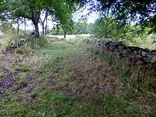 In the late 15th century Skovgård manor was owned by Jens Madsen Munk of Viborg (died ~1501).[1] His daughter Ellen (died after 1511)[2] was married to Hans Lykke on the nearby manor of Rugaard,[3] and through her the manor came into possession of the Lykke family. Lady Ellen held Skovgård as a widow, but then it was inherited by her son Erik Lykke (dead before 1536).[4] During her grandson's, Erik Eriksen Lykke, ownership, Skovgård burned down in 1541, but was later rebuilt. Erik Lykke junior's son Falk Lykke, sold it in 1619 to Dorotea Juul (died 1644),[5] widow of Jørgen Kaas, and through her the manor came to her nephew Captain Hans Juul (died 1697) ,[6] who sold it in 1648 to Just Høeg (died 1649).[7] In a few years Skovgård then changed hands several times, before it came into the possession of Otto Kruse (died 1699),[8] who joined it with the manor Østergård in the nearby Fjellerup parish. The two manors were then conjoined as a production unit until 1789, after which it has been a small hamlet, Skovgårde, with originally three farmsteads. The archaeological site became a protected ancient monument in 1884.[9][10]
