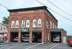 The Skowhegan Fire Station is located at 16 Island Avenue in the center of Skowhegan, Maine. The fire station, built in 1904 to a design by William R. Miller, is one of the state's finest Romanesque Revival fire houses. It was added to the National Register of Historic Places on October 20, 1983.[1]