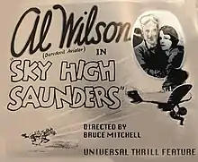 Sky High Saunders (aka Skyhigh Saunders and Sky-High Saunders)is a 1927 American silent action film directed by Bruce M. Mitchell. The film stars Al Wilson (playing both "Sky-High" Saunders and his twin brother, Michael Saunders), Elsie Tarron and Frank Rice. Sky High Saunders was one of a series of films that showcased the exploits of the stunt pilots in Hollywood.[1]