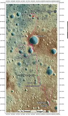 ![]() Map of the minor features that the rover Lunokhod-1 passed | |