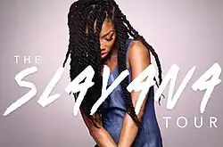 The Slayana World Tour (sometimes referred to as the Slayana In These Streets Tour) was the third headlining concert tour by American singer Brandy. The tour was announced on February 23, 2016, and started on June 15, 2016 in Auckland, New Zealand, visiting Europe and Oceania, while performing in twelve cities in June and July.[1] The tour's title is in reference to Norwood's fan nickname — itself a pun on the word "slay" and her middle name Rayana — as well as her own label Slayana Records, which she launched and released her first single "Beggin & Pleadin" on in 2016.[2]