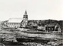 Eventually, that little wooden church became too small for the parish, so a new church was built just next to the old church in 1880. The new church was one of Norway's largest wooden churches, seating about 1,000 people. The last worship service in the old church was held on 26 September 1880, and then the new church was consecrated on 30 September 1880 by Bishop Andreas Grimelund. For a time, the two churches stood side by side before the old one was taken down and sold. On 8 June 1984, the large wooden church building burned to the ground in a big fire. It was said that the whole building was gone in about one hour.[3][4][5]