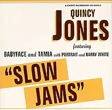"Slow Jams" is a song by American musician Quincy Jones, taken from his studio album Q's Jook Joint (1995). Written and produced by Rod Temperton, vocals for the song were initially recorded by Babyface, Portrait, Barry White and Coko. A remix version, released in 1996 as the album's second single, replaced the latter's vocals with Tamia. A commercial success, it peaked at number 2 on the New Zealand Singles Chart and reached the top 20 on Billboard's Hot R&B Songs chart. The remix version featuring Tamia earned a nomination for Best R&B Performance by a Duo or Group with Vocals at the 39th Grammy Awards in 1997.