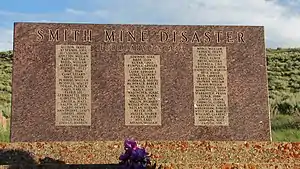 The Smith Mine disaster was the worst coal mining disaster in the U.S. state of Montana, and the 43rd worst in the United States, according to the National Institute for Occupational Safety and Health (NIOSH).[1]