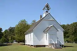 Smyrna Methodist Church is a historic church in rural White County, Arkansas. It is located west of Searcy, on Jaybird Lane just south of Arkansas Highway 36. It is a single story wood-frame structure, with a gabled roof, mainly weatherboard siding, and a stone foundation. A small open belfry rises from the roof ridge, topped by a gabled roof. The front facade has a projecting gabled vestibule, its gabled section finished in diamond-cut wooden shingles. The main gable is partly finished in vertical board siding, with decorative vergeboard woodwork attached to the roof edge.