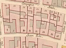 The site was formerly part of a larger property, continuing all the way to Kompagnistræde on the other side of the block. This property was listed in Copenhagen's first cadastre of 1689 as No. 13 in Snaren's Quarter and was owned by renteskriver Jacob Sørensen at that time. It was later divided into two properties, one in Snaregade and one in Kompagnistræde. The property in Snaregade was listed in the new cadastre of 1756 as No. 11, owned by kancelliråd Jens Reh's widow. The other property was listed as No. 62 and belonged to Jens Pedersen Voldbye.[1]