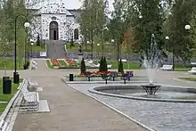 The Snellman Park (Finnish: Snellmaninpuisto) is the oldest park in the city of Kuopio, Finland, located at the Vahtivuori district in the city center between the Kauppakatu and Minna Canthin katu streets, in the adjacent block of Kuopio Cathedral.[1][2][3][4][5] The park covers an area of 1.4 hectares.[6] Today, the park and its surroundings are part of the larger Kuopio National City Park, established in late 2017.[7] The park is named after J. V. Snellman (1806–1881), the senator and the Fennoman, who influenced the affairs of the Grand Duchy from Kuopio, among other places.