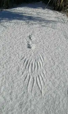 Some birds (e.g. pheasants) leave on the snow a figure similar to a snow angel. Weddell seals often leave outlines of themselves, similar to a snow angel, melted into the ice; additionally, these seals can thumb their nose at the cold, leaving images called seal shadows.[3]
