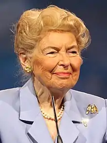 Schlafly acknowledged that motherhood and family life are difficult, but contends that the family is still the place of greatest growth and satisfaction for women.[26] Schlafly rejected what she claimed is the feminist view that the family is an "anachronism" that binds women down.[27] Instead, she said, "Faith, commitment, hard work, family, and children, and grandchildren still offer the most fulfillment, as well as our reach into the future. Feminism is no substitute for traditional marriage...Careers are no substitute for children and grandchildren".[28] The family doesn't destroy women's rights; rather, according to Schlafly, the institution of the family as "the basic unit of society...is the greatest single achievement in the entire history of women's rights".[29]