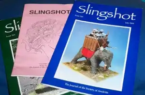 21. Ancient Wargaming, by Phil Barker, page 64 (published by Patrick Stephens Ltd./Airfix, 1975) - “All ancient wargamers benefit by belonging to the Society of Ancients, who publish the bi-monthly journal Slingshot, which is essential reading”.