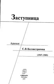 - ↑ "Страница 1 из 75: Заступница: Адвокат С.В. Каллистратова - сост. Печуро Е." lib.web-malina.com.