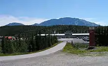 The airport is situated twenty minutes drive from the town center. There is an airport coach service operated by Nettbuss. Paid parking, taxis and car rental are available at the airport.[13] The road (although in part obscured by forest) is quite beautiful, located 400 meters (1,300 ft) above the Sognefjord, with a view over the 1,717-meter-high (5,633 ft) mountain Bleia on the other side (best seen from 61°10′34″N 7°10′32″E / 61.176033°N 7.175654°E).