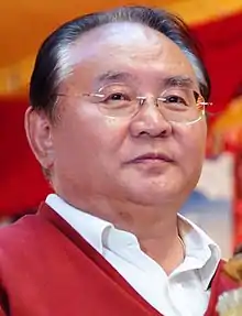 Rinpoche was a regular speaker at conferences around the world, addressing topics such as Buddhism in the modern world, death and dying, meditation and happiness. In 2004, he served as a keynote speaker at the Parliament of the World's Religions, where over 8,000 religious leaders and lay people gathered in Barcelona in Spain to discuss the issues of religious violence, access to safe water, the fate of refugees worldwide, and the elimination of developing countries' debts.[22] In August 2008 he joined Robert Thurman at the Aspen Institute in Aspen, Colorado, to speak about "Tibet’s Unique Buddhist Heritage" as part of a symposium called "His Holiness the Dalai Lama at Aspen: A Celebration of Tibetan Culture", organized jointly with the Conservancy for Tibetan Art and Culture.[23] In October 2010 he gave a keynote speech on "Tibetan Buddhism in Modern Western Culture" at the International Conference on Tibetan Buddhism held at Emory University.[24] In 2011, he was a keynote speaker and participant in the Global Buddhist Congregation in Delhi which brought together "religious, spiritual and world leaders, as well as 800 scholars, delegates and observers from 32 countries."[25] "The goal was to examine both the capacity and the resilience of Buddhism to engage with the most pressing concerns of the modern world, namely violence, social and economic disparity, environmental degradation and discord between and within communities and nations" and "to contribute to cultivating and fostering peace, harmony, co-existence and a shared responsibility amidst the diversity of cultures, communities and nations."[25] In 2012, he was a keynote speaker at the Happiness and Its Causes conference in Sydney.[26]