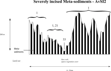 Detailed information on soils is available for the southern part of the district which is part of the Giba River catchment. Given the complex geology and topography of the district, it has been organised into land systems - areas with specific and unique geomorphic and geological characteristics, characterised by a particular soil distribution along the soil catena.[7][8][9] Soil types are classified in line with World Reference Base for Soil Resources and reference made to main characteristics that can be observed in the field.