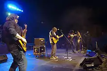 The band's music blends modern musical instruments (drum set, electric guitar, bass guitar, and saxophone) with traditional Andean or Chilean instruments, including the charango and zampona. Lyrics with references to peace, poverty, family and god earned him more than a few associations with the Christian Democratic Party (which never really existed).[1]