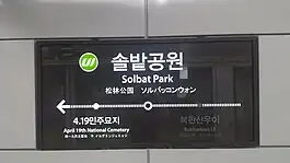 Solbat Park Station is a station on the Ui LRT located in Ui-dong, Gangbuk-gu, Seoul.[1][2] It opened on 2 September 2017.[3]