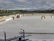 Sollentunavallen is the biggest playing field. It consists of two fields. The main arena is for football and athletics. Alongside it, there's a field with artificial grass, which is used for bandy during the winter season.