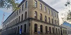 The first educational institution at the site of gymnasium was the Latin Grammar School established in 1781.[1] The school building used at that time was built at the site of an earlier Ottoman bath where in 1698 Martin Lipković received permission to build a brewery and a post office.[3] The decision by Franciscan friar Fra Bona Mihaljević to close the Latin Grammar School caused dissatisfaction among parents motivating authorities to open the public school already at the beginning of the next school year.[3] First ideas about the opening of gymnasium in the city appeared already in 1819 when Serb community in Sombor collected 20,000 forints for the new school but the town authorities failed to ensure the land for the new institution.[3] In 1830 6-class gymnasium program was initiated in the town and from 1853 it provided German and Serbian language elementary gymnasium classes.[1] Sombor's Roman Catholic elementary schools introduced four-year school curriculum in 1846 with Orthodox schools following with the same decision in 1855.[3] In 1843 the town appointed a commission on the proposed new gymnasium but this decision was not followed by the establishment of the school.[3] The Town of Sombor Gymnasium in Serbian and Hungarian language was established only in 1869 but it remained open only for 2 years.[3] The current institution was finally established in 1872 as the State Gymnasium of Sombor.[1]