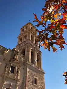 The Santo Domingo Church, begun in the 18th century, was one of twenty two constructed in the state by Count Fernando de la Campo, along with the Santuario de Plateros. It is Baroque with the interior containing valuable religious art. It is also the final resting place of the count. Next to it is the Santa Rosa Monastery and in front is a public garden.[1][3]
