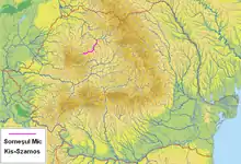 The Someșul Mic (Little Someș, Hungarian: Kis-Szamos) is a river in north-western Romania (Cluj County). At its confluence with the Someșul Mare in Mica, the Someș is formed.[1][2][3] Its total length is 178 km (111 mi), and its drainage basin area is 3,773 km2 (1,457 sq mi).[2][4] It is formed at the confluence of two headwaters, Someșul Cald ("Warm Someș") and Someșul Rece ("Cold Someș"), that originate in the Apuseni Mountains. From the confluence, in Gilău, the Someșul Mic flows east and north through Cluj-Napoca, Apahida and Gherla, until it meets the Someșul Mare in Dej.