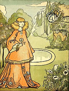 Once Princess Gentianella hears what the citizens are saying, she drops down and starts to cry. Wherever her tears landed, flowers began to grow. She exclaims her excitement and the wymp reappears on the wall. She could hear the voices of the kingdom shouting their excitement at the sudden flowers in the garden. The wymp pointed out that now Prince Amaryllis can now marry Anemone, the Witch's beautiful daughter. The Princess is once again saddened by the news, but the wymp reassures her.“'Don't you fret about that, my little dear,' he cried. 'Do you suppose the Witch's daughter wants anybody else's Prince, either?' Princess Gentianella clapped her hands with delight. 'Of course she doesn't!' she cried. 'But perhaps she does not know he is somebody else's Prince.'".[6]