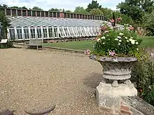 The park surrounding the hall was established in the 17th century and expanded during Peto's ownership to one of 140 hectares (350 acres). This included the building of a series of formal gardens designed by William Andrews Nesfield and includes a kitchen garden with glasshouses probably designed by Joseph Paxton.[7][15] The only other example of similar work by Paxton is at Chatsworth House.[16] The park features two sculptures by Thomas and one by Gustav Natorp as well as a yew hedge maze.[7][17]