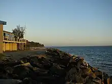 Yet today, the Yacht Club boasts Seaside views and as recently as 5 to 10 years ago had its roof blown off and severely damaged in a large storm after decades of erosion drew a new coastline almost to the doorstep of the Yacht Club. Seawalls constructed of natural rocks have been strategically placed around the coastline of Somers Beach complemented by wooden seawalls and many small wave-breaks that have all slowly succumbed to the waves of the sea. Experts such as marine geomorphologists have assessed the erosion situation, however no definitive explanation can be found as to why the erosion occurs. The most popular theory is that of Longshore Drift, where successive "waves" of sand pass Somers, with sand build up when such a wave passes, and erosion at other times. A commonly held view is that the man-made channelisation of Merricks Creek has upset the delicate equilibrium of the coastline. In recent years the erosion has slowed and almost stopped, and experts predict it could be due to a major decrease in easterly winds, tending to slow the effects of longshore drift, thus the erosion. An alternative view is that the decrease in rainfall has limited the period when Merricks Creek is flowing into the sea, thus allowing sand build up at the mouth of the creek, which then allows the sand build up to propagate along the beach. Between 2011 and 2015, the beaches of Somers have lost a considerable amount of dunage and sand, seen most evidently west of the Wits End Creek and west of Merricks Creek. These areas have lost up to as much as six to eight metres of dunes in a five-year period. As recently as May 2015, the beach west of Merricks Creek lost three metres of dunes in as little as three days, caused by gale-force winds, large swell and king tides.