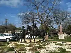 Settlers Memorial bronze work on lawn of the Somervell County Courthouse, April 1, 2010