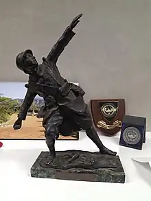 The cup depicts a soldier throwing a grenade, and was created by Georges Chauvel in 1917,[3] a French sculptor in the French Army at the time.[2]
