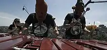 Son Rompe Pera is a group from colonia (neighborhood) Ramos Millán in Naucalpan, formed in 2017 by brothers Jesús Ángel "Kacho" Gama and Alan "Mongo" Gama. Marimba music is popular in the southern states of Mexico and in many cities there are marimba groups who play in the street or in places such as restaurants and squares. José Dolores "Batuco" Gama Melchor, their father, owned one marimba so the Gama brothers worked with the instrument playing alongside him in the streets and at parties.[3]