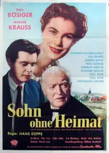 Son Without a Home (German: Sohn ohne Heimat) is a 1955 West German drama film directed by Hans Deppe and starring Werner Krauss, Elisabeth Flickenschildt, Josefin Kipper.[1] It was shot at the Spandau Studios in Berlin and on location at Bad Kissingen in Bavaria. The film's sets were designed by the art director Willi Herrmann.