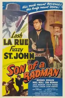 Son of a Bad Man is a 1949 American Western film directed by Ray Taylor starring Lash LaRue and Al "Fuzzy" St. John.[1] The film was shot at the Iverson Movie Ranch.