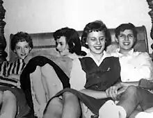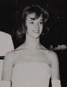 Locke was a cheerleader and class valedictorian in junior high.[44] She played basketball as an eighth-grader for Shelbyville Mills School, making her hardwood debut on December 5, 1957 against Wartrace.[45] From 1958, she attended Shelbyville Central High School, where she was again valedictorian and voted "Duchess of Studiousness" by classmates.[46] She continued to play on the girls' basketball team, served as PTSA representative, and was president of the French club.[24][25][26][27] Regardless, she wasn't considered "date material" by the more socially prominent boys in her class.[10] Her first beau, according to locals' reminiscences, was Fred Thomas Jones, a carpenter's son. Her graduation yearbook listed her grade average 97.72% and her ambition "always to take disappointment with a smile."[27] In 1962, Locke matriculated at Middle Tennessee State University (then Middle Tennessee State College) in Murfreesboro on a full scholarship.[36] Majoring in drama,[47] she was a member of the Alpha Psi Omega honor society while at MTSU and appeared on stage in Life with Father and The Crucible.[41][48][49] She dropped out after completing two semesters of study.[50]