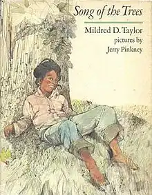 Song of the Trees is a 1975 story by author Mildred Taylor and illustrator Jerry Pinkney. It was the first of her highly acclaimed series of books about the Logan family.[1] The novella follows the time Mr. Anderson tried to cut down the trees on the Logan family's land. The story revolves around Cassie Logan who tries to save the trees on her Big Ma's land. Even though Cassie's family needed some money, something told Cassie the trees were just as valuable.