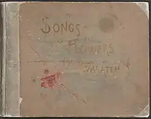 The compilation of poetry by Utah women was created for the 1893 World's Columbian Exposition in Chicago.[1][2] The Church History entry for Alice Smith Merrill lists her as the publisher for Songs and Flowers of the Wasatch.[3] Wells mentioned three hand-painted copies of the book in her journal. Two of these initial three were on display at the World's Fair in the Woman's Building Library and in the Utah Building. Wells's copy currently resides in the BYU Library special collections and the Church History Library archives.[4] It is possible that a third copy was on display as well: Wells's "Memoranda" refers to copies displayed in the Woman's building, in the Utah Building, and a third in the Liberal Arts in the Woman's Building. She wrote that Margaret Blaine Salisbury and Emily S. Richards received the other two copies.[5][Note 1] In her journal entry for June 8, 1893, she said that she "found the 2 copies of Poems Edna had left for me" and that she took one to use in the Liberal Arts building. Later on June 12, she reported going "to see about the book for Liberal Arts building". It is unclear if she left a copy there; her journal entry states that the director of the Woman's Department in the Liberal Arts Building instructed her to leave it in the organization room in the Women's building.[6]