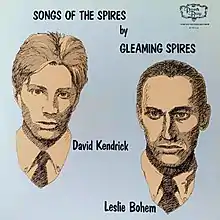 Gleaming Spires began as a side project of Leslie Bohem and David Kendrick. In 1980, they were enlisted as the bassist and drummer, respectively, for the art pop band Sparks, consisting of brothers Ron and Russell Mael. While in Sparks, Bohem and Kendrick convened with producer Stephen Hague to record a series of demos. The demo tape made its way to K-ROQ in Los Angeles,[1] and according to Kendrick, when Posh Boy founder Robbie Fields heard the tape, he decided to release the songs as they were; the Songs of the Spires album consists of these demos.[2][3]