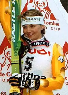 Sonja Nef (born 19 April 1972) is a Swiss former alpine skier. Nef was women's World Champion in giant slalom in 2001. She won the 2001 and 2002 World Cup in Giant slalom. At the 2002 Winter Olympics, she finished third in giant slalom.[1]