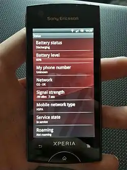 ![]() An image of the Xperia Ray running Gingerbread | |