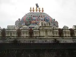 The temple is believed to have been built by the Medieval Cholas of the late 8th century CE, with later contributions at different times from Thanjavur Nayaks. The temple has two inscriptions dating from the Chola period. The temple has a five-tiered rajagopuram (gateway tower) within a granite wall. The complex contains all the shrines and water bodies associated with it.