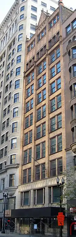 South Loop Printing House District is a historic district in the downtown Chicago Loop area of Chicago, Illinois. The district is roughly bounded by Congress, Polk, State, Taylor, and Wells Streets and includes 28 contributing buildings.[2] The district includes many of the printing buildings used by Chicago's printing industry, the largest in the midwest from the 1880s through the 1930s. Due to its proximity to Dearborn Station and its thin property blocks that allowed for tall and thin printing buildings, land in the district was attractive to large printing companies. The district includes a small number of large and detailed buildings and many more small, homogeneous buildings used by less prominent printing firms.[3]