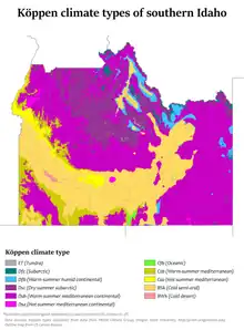 Köppen climate types in southern Idaho